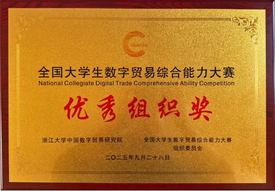 第四届全国大学生数字贸易综合能力大赛全国总决赛于2025年9-10月在杭州和义乌举办,我校学子荣获一等奖1项、二等奖1项,我校获得“优秀组织奖”。这是我校首次参加此项赛事的全国总决赛,取得质与量的双重突破。
