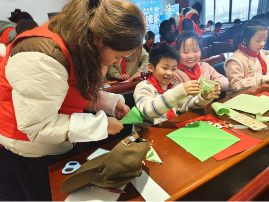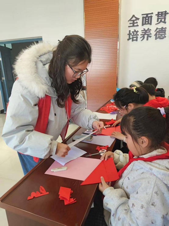 随后进入实际操作环节。志愿者耐心示范剪纸的基本技巧,从握剪姿势、纸张折叠到图案勾勒,逐步细致讲解。孩子们跃跃欲试,在志愿者指导下小心翼翼地动起手来。从生疏到逐渐熟练,不一会儿,一张张红纸在他们手中变成了各式各样的图案。孩子们兴奋地展示自己的作品,脸上洋溢着成就感。“以前只在电视上看过剪纸,今天自己动手,觉得特别有趣!我还想学更多图案。”教室里充满欢声笑语和剪纸的“沙沙”声。