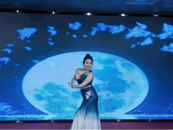 晚会亦不乏文化韵味。古典舞《知否知否》+《彩云之南》融合婉约与奔放,朗诵《百年恰是,风华正茂》以铿锵之声表达青年担当。舞蹈《花鼓情》则以欢快鼓点和舞步将气氛推向高潮,彰显文化自信。