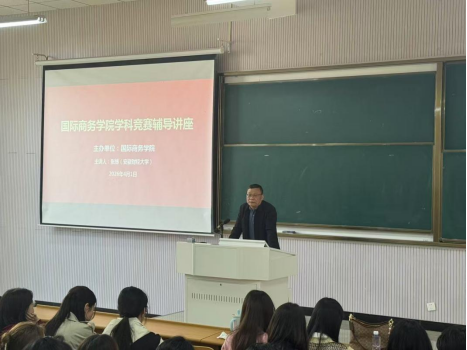 为提升教师的学科竞赛指导水平,助力学生牟定竞赛选题准备竞赛内容,4月1日下午,国际商务学院特邀安徽财经大学金融学院副教授张博博士为学院师生开展学科竞赛专题辅导讲座,会议由院长任森春主持。