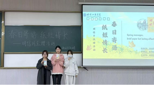 一张明信片承载着春日的寄意。在校园同一片灯火下,以最温润的笔触致予同窗,以最诚挚的祝福相互馈赠。4 月 14 日晚 7 时,我院在笃行楼 A103 开展 “春日寄语,纸短情长” 主题明信片互赠活动。